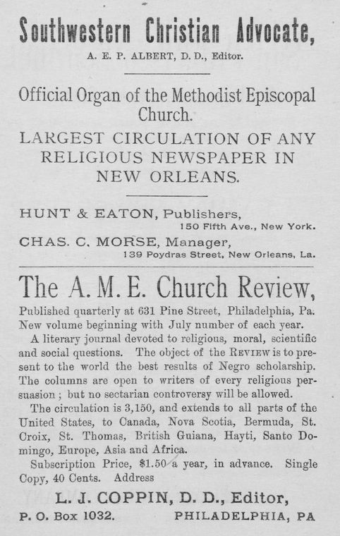 Isaiah Benjamin (I. B.) Scott In 1896 the church's General Conference named Scott editor of the Southwestern Christian Advocate in New Orleans, Louisiana, a post he held for eight years.
