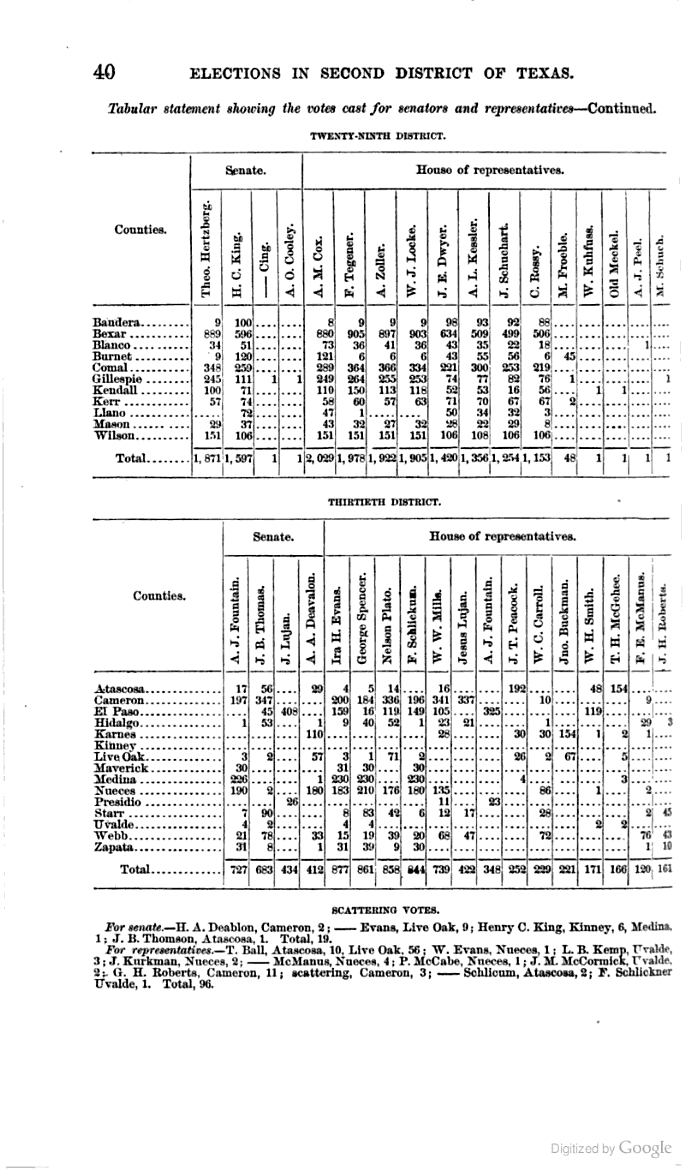Tabular statement showing the votes cast for senators and representatives
