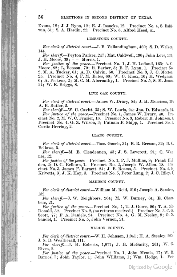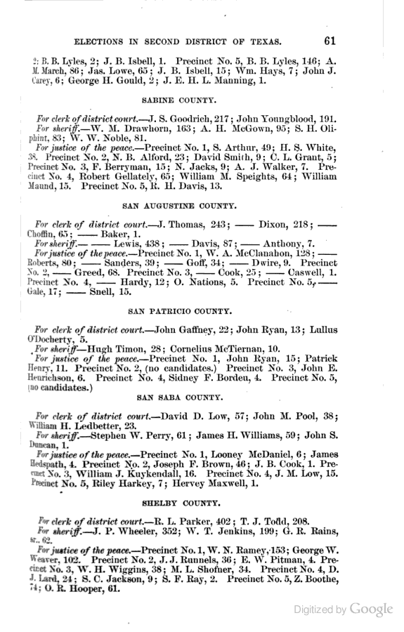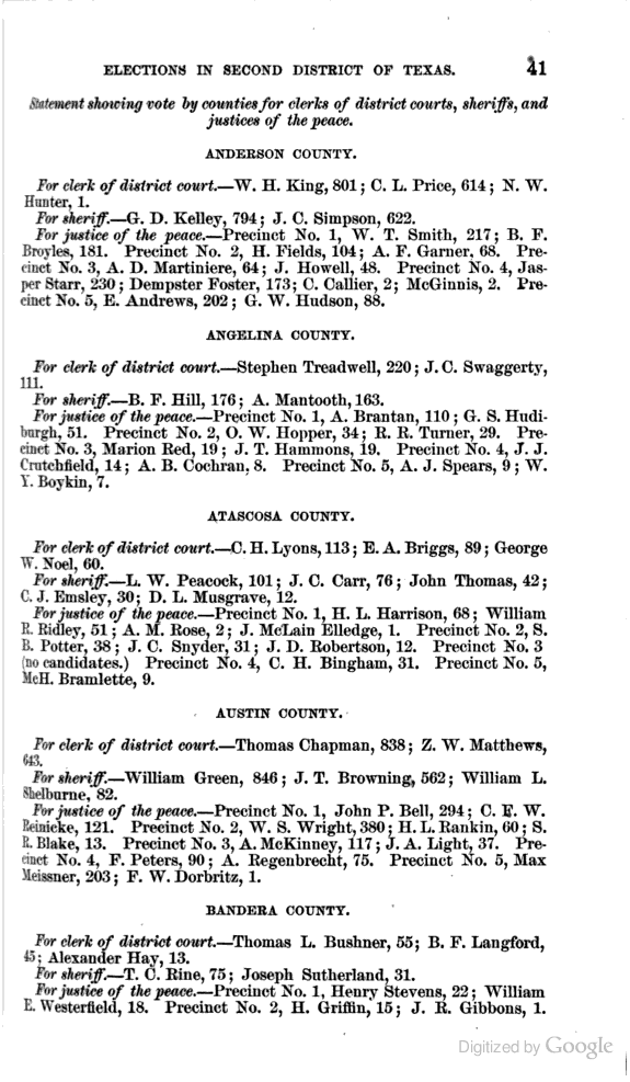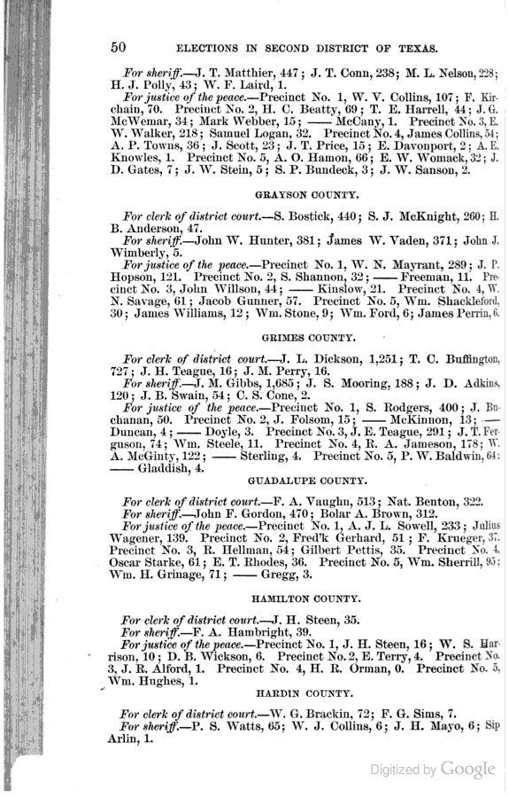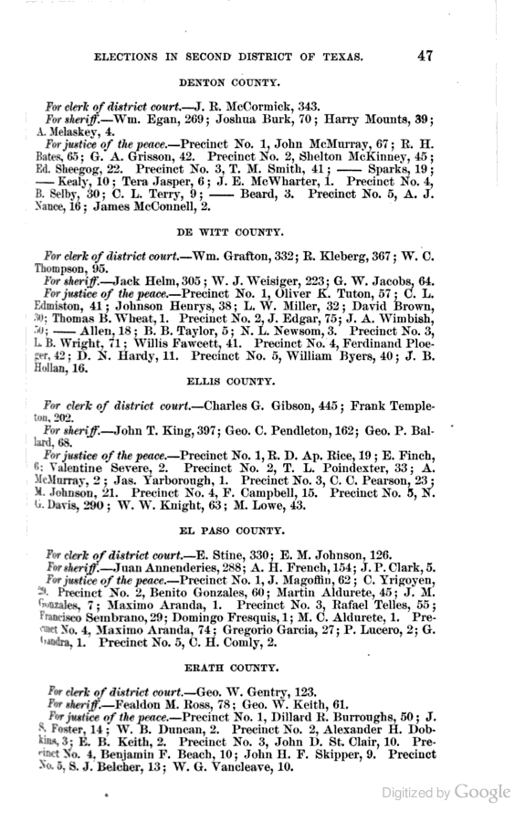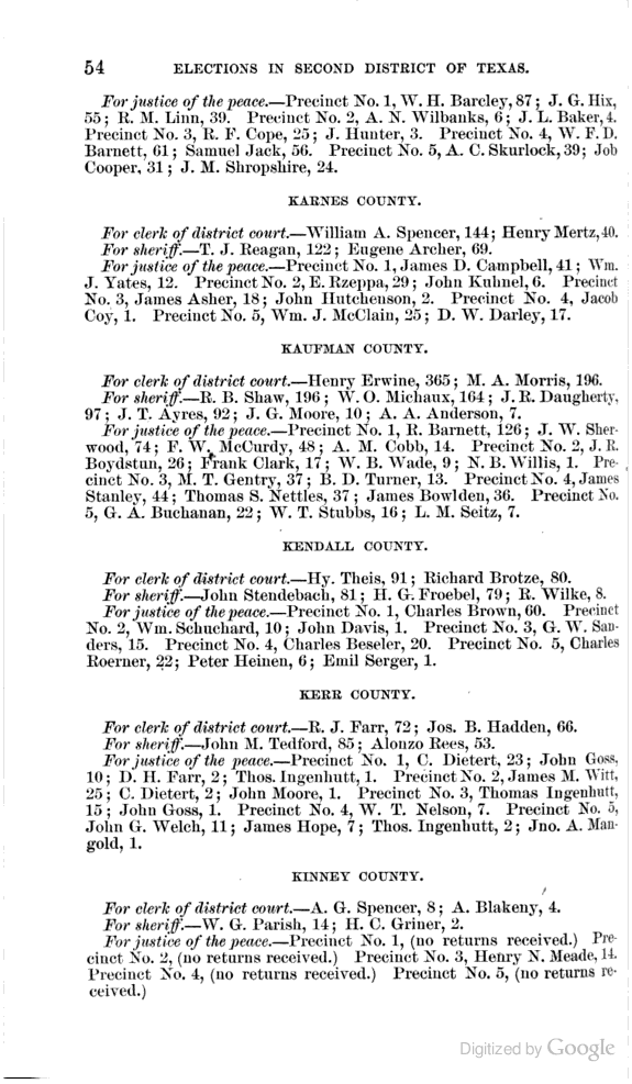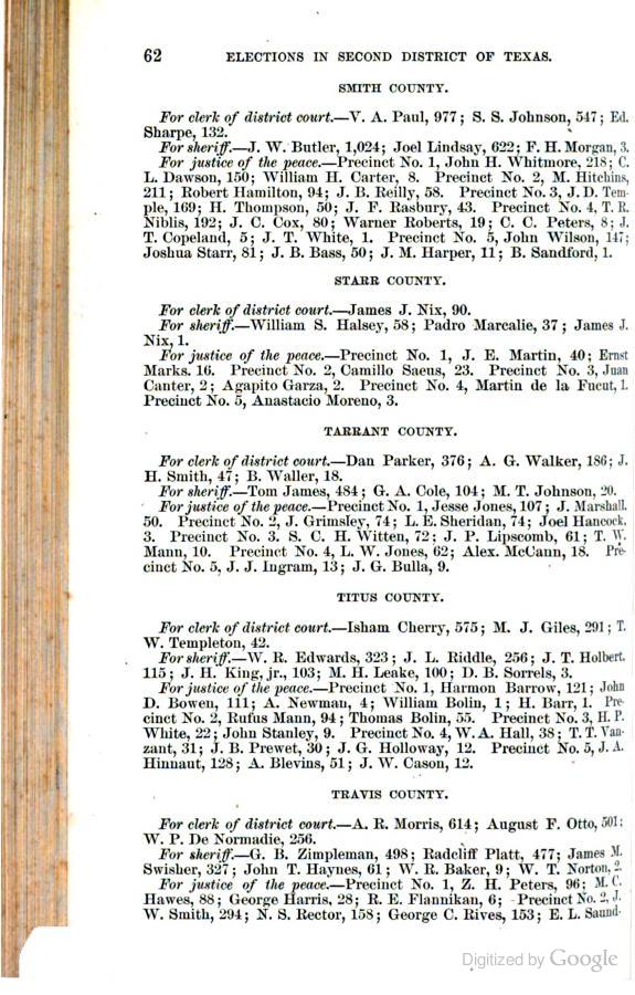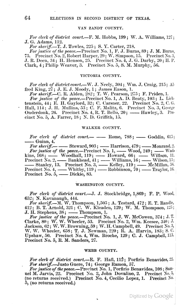 Statement showing vote by counties for clerks of district courts, sheriffs, and justices of the peace.
