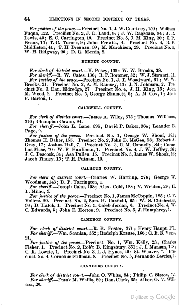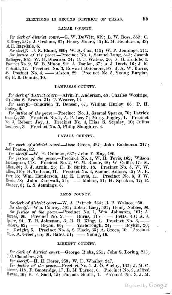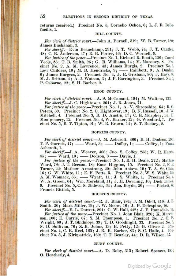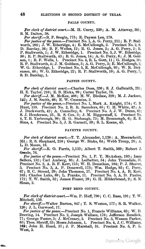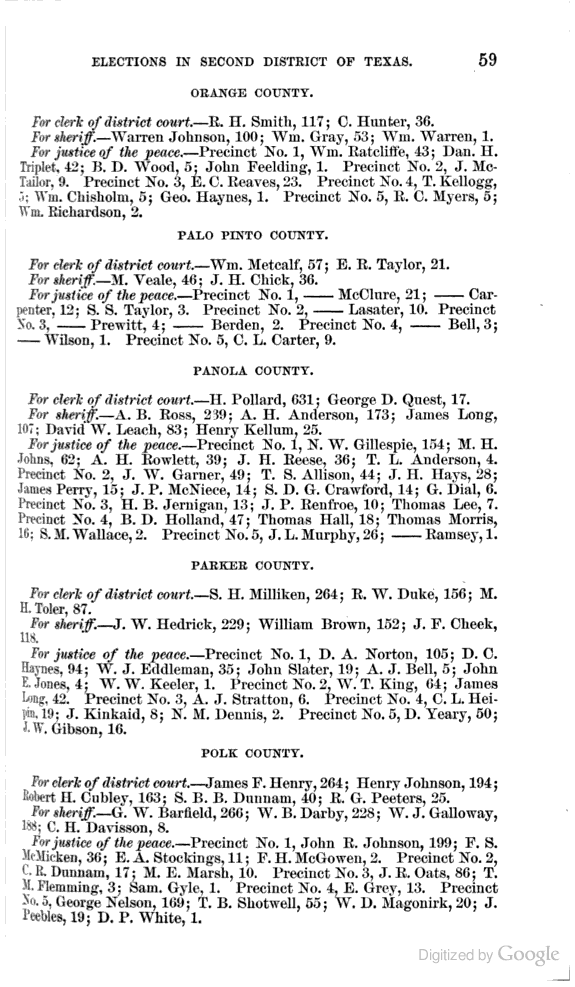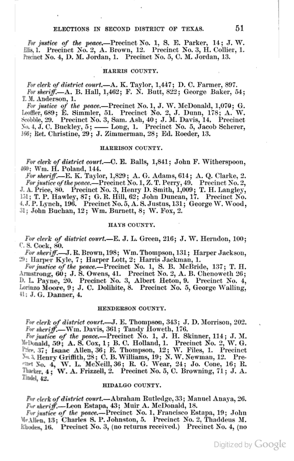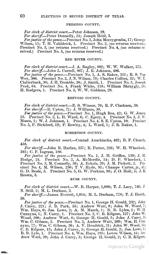 Statement showing vote by counties for clerks of district courts, sheriffs, and justices of the peace.