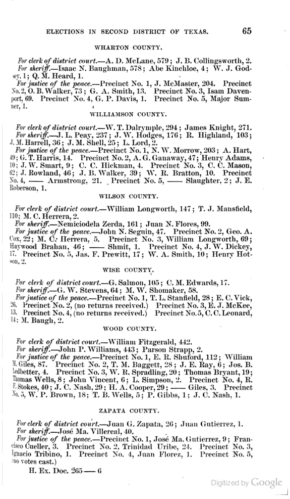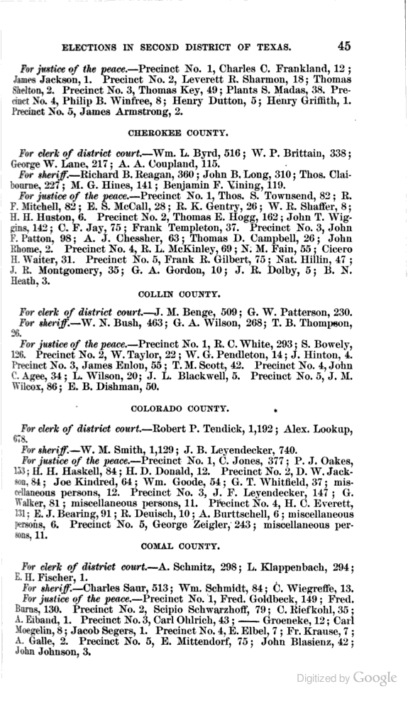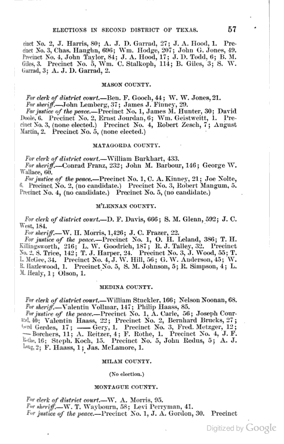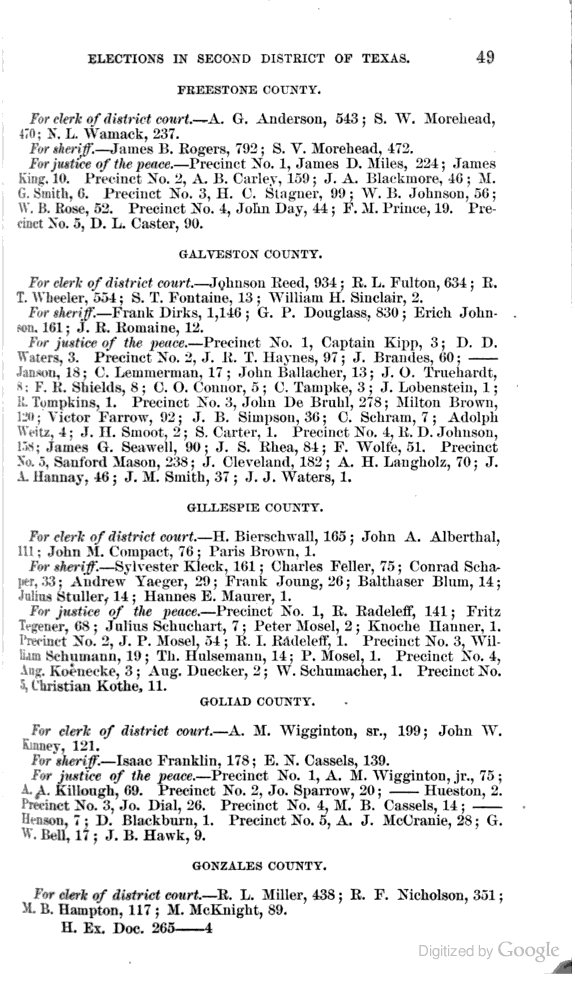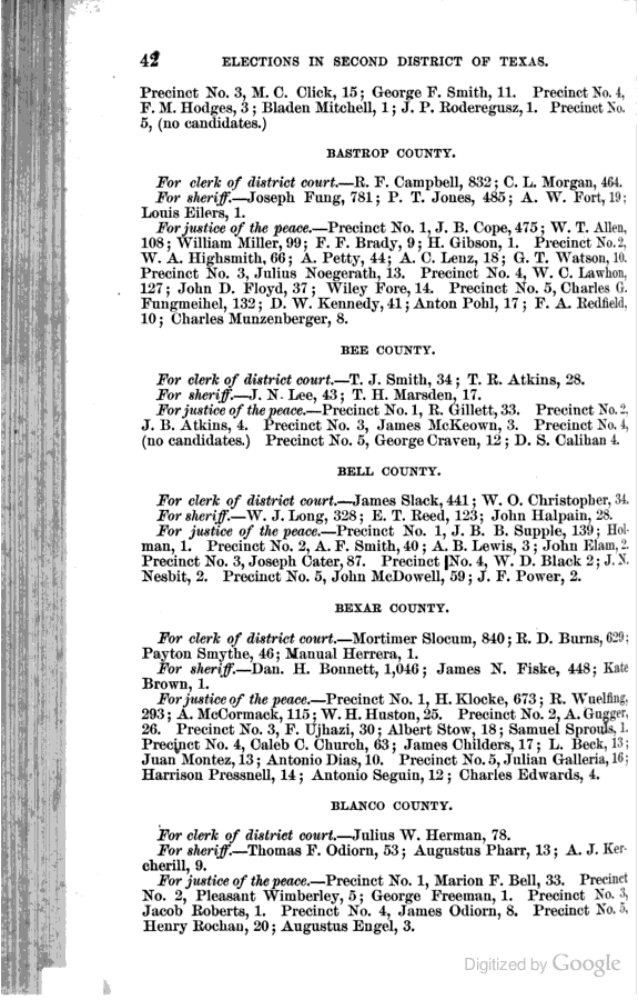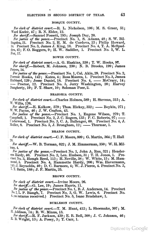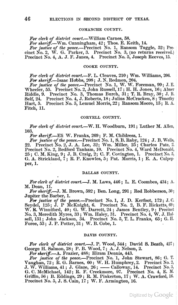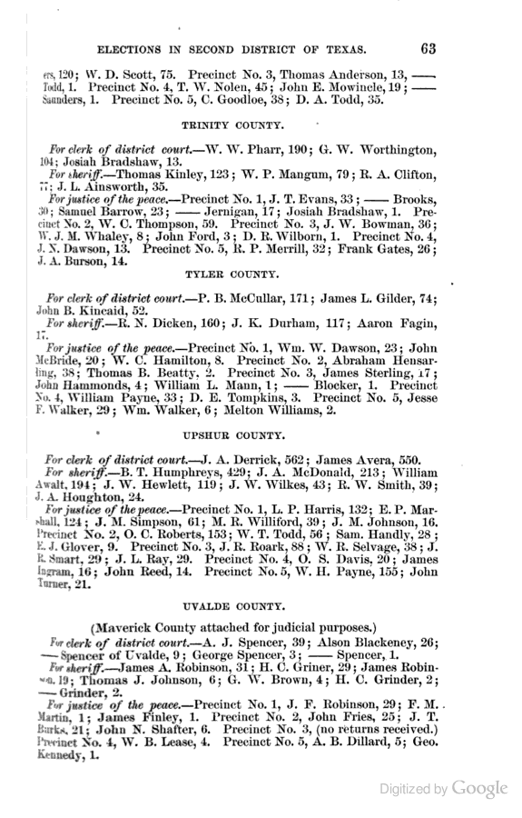 Statement showing vote by counties for clerks of district courts, sheriffs, and justices of the peace.